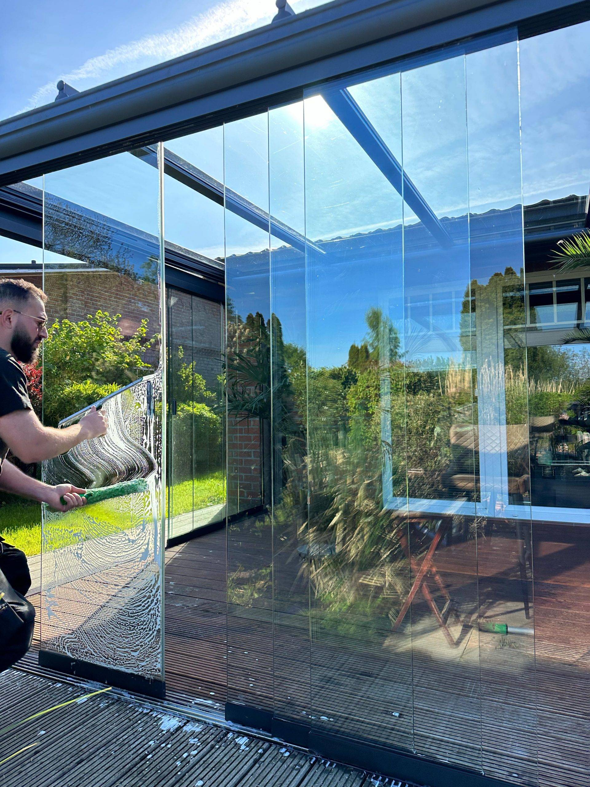 Streifenfreie Sauberkeit für Fenster, Glasfassaden, Wintergärten oder Schaufenster – innen & außen, mit Blick fürs Detail.