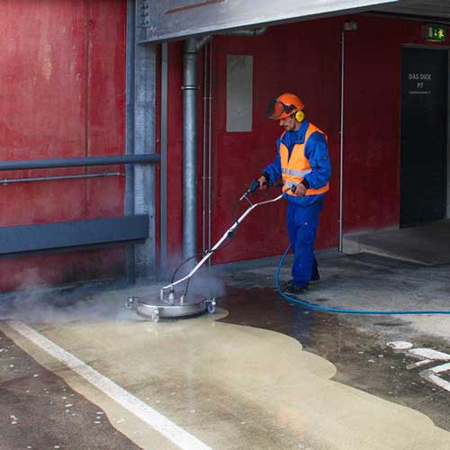 Wir reinigen mit bis zu 100 °C heißem Wasser – ganz ohne Chemie, nur mit Wasser und Druck.